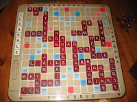 Here’s the Scrabble board from our game last night. Because our son’s seven, he gets to double his score at the end of the game. He won, handily.