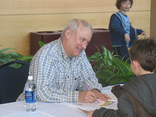 Robert Munsch did two shows today at the Living Arts Centre, and in-between he signed books and had his picture taken with star-struck youngsters (and their star-struck parents).